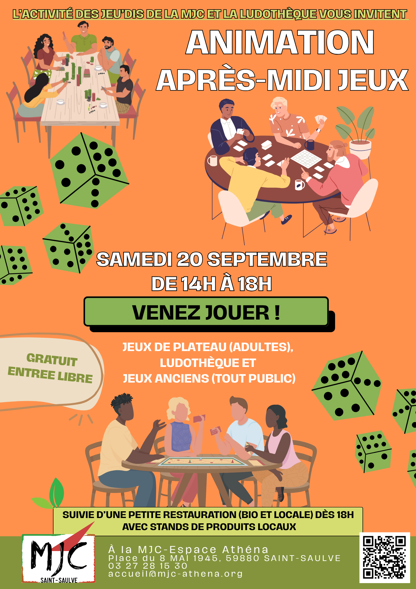 La fine équipe des Jeu’dis de la MJC accueillera les adultes dans une ambiance chaleureuse pour des parties de jeux de plateau et ces passionnés vous feront découvrir les pépites de leur collection qu’ils ont sélectionnées avec amour !