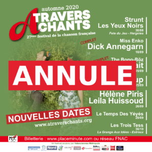 Maintenant convaincus que les conditions ne seront pas réunies (jauge réduite, absence de buvette…), nous avons donc décidé à regret de renoncer, pour nous consacrer à la préparation d’ A Travers Chants 2021. Soyez assurés que nous tenterons de rester fidèles aux choix et à l’esprit de la programmation 2020. Nous adressons des remerciements chaleureux à tous, public et partenaires qui nous avez réaffirmé votre fidélité et votre soutien, malgré les circonstances.