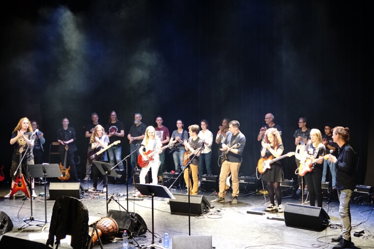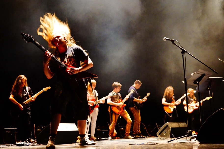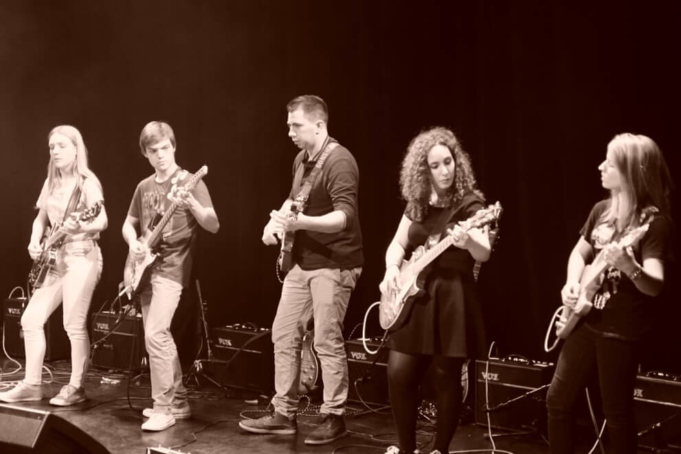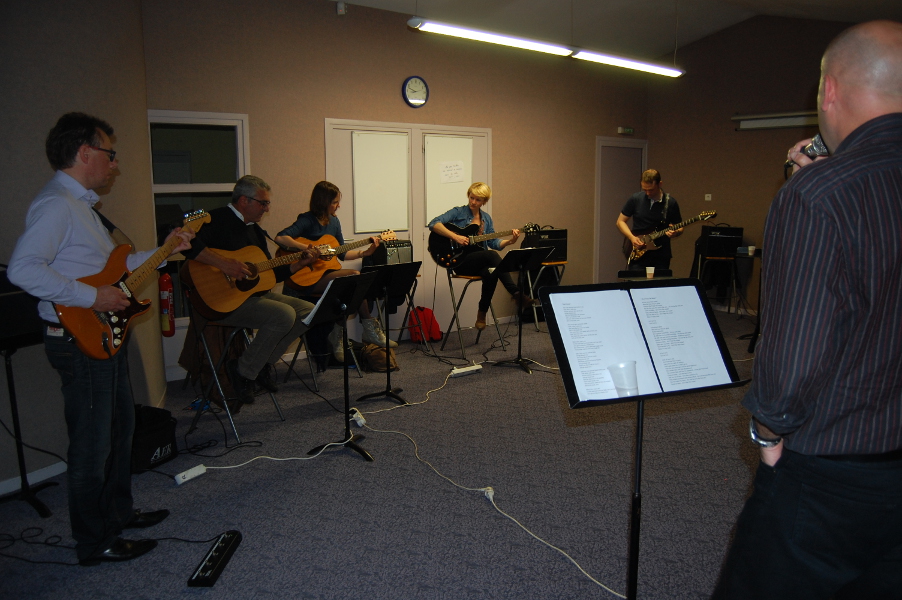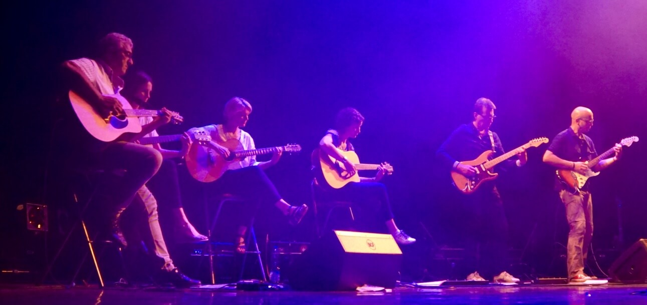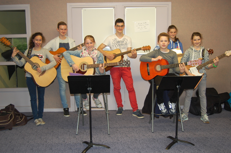 Les cours de guitare (acoustique / électrique) s’adressent à tous, du débutant au guitariste avancé. Les groupes de travail sont répartis par niveaux avec une approche musicale variée (pop, rock, variété, blues, métal, funk…). Le programme pédagogique permet une progression rapide (si motivation! ) .