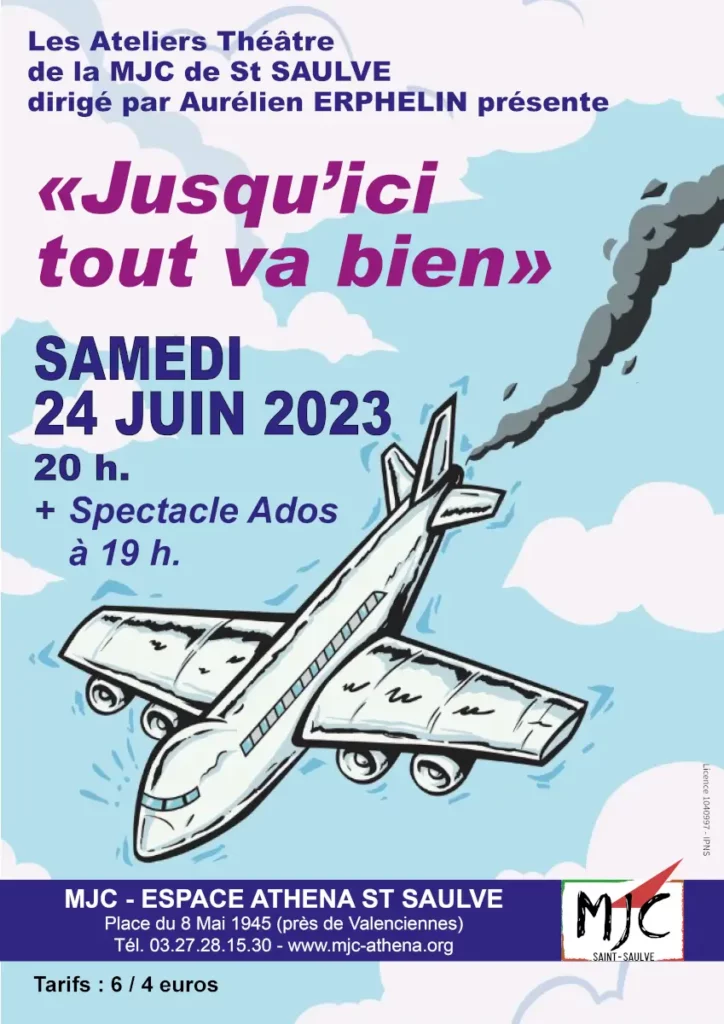 Les ateliers Théâtre de la MJC vont présentent « Jusqu’ici tout va bien », restitution de l’atelier dirigé par Aurélien Erphelin. L’atelier Ados présentera également à 19h un spectacle pour cette fin ce saison.